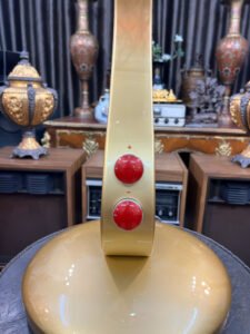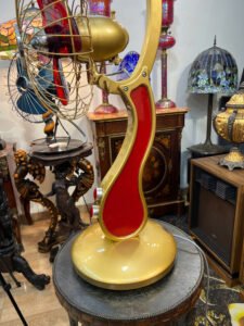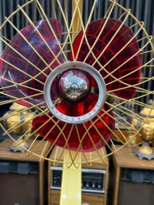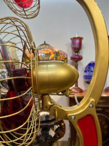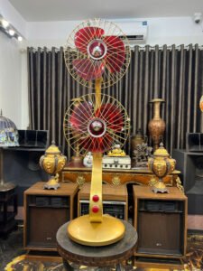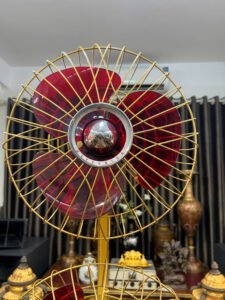 - Sắc đỏ quyền lực: Cánh quạt màu đỏ đặc trưng cực kỳ nổi bật trên nền thân vàng đồng.