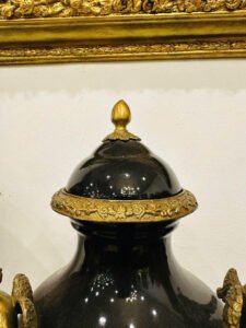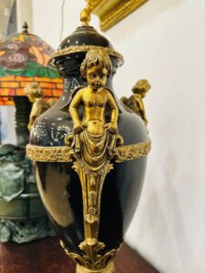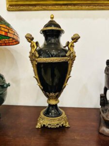 Một tuyệt phẩm mang phong cách châu Âu quý tộc, kết hợp giữa men đen huyền bí và chi tiết đồng thủ công tinh xảo.