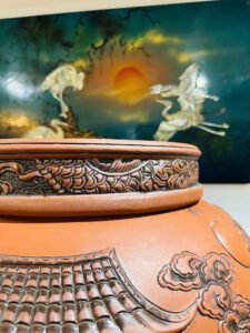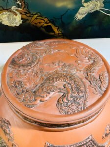 Chum rượu gốm chạm rồng cá chép – tinh xảo và đầy ý nghĩa phong thủy.