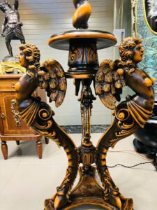 Đế đèn: vững chãi, chạm trổ hoa văn cầu kỳ, toát lên nét cổ điển sang trọng.
