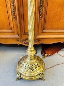 Đèn Tiffany chân đồng kết hợp mặt đá cẩm thạch tự nhiên và chao vương miện kính nguyên miếng là dòng đèn cây cao cấp, toát lên vẻ đẹp quyền quý và đẳng cấp. Thiết kế hài hòa giữa đồng – đá – kính tạo nên tổng thể sang trọng, bền vững theo thời gian.