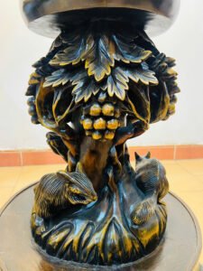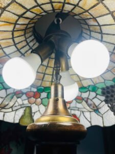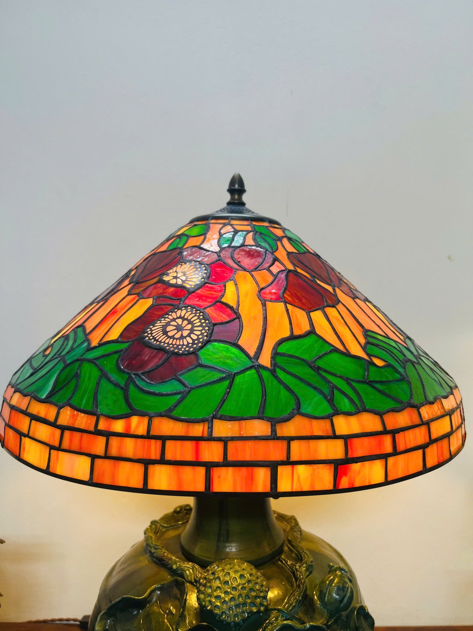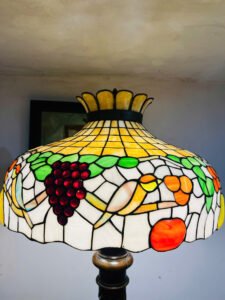 Đèn cây khủng Tiffany họa tiết Sóc Nho là dòng đèn nghệ thuật cỡ lớn, mang đậm tinh thần quý tộc châu Âu. Thiết kế lấy cảm hứng từ thiên nhiên, hình ảnh sóc và chùm nho được thể hiện sống động, tượng trưng cho sự sung túc – thịnh vượng – viên mãn.