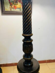 - Chân gỗ sồi tự nhiên, đục tay họa tiết nho – sóc tinh xảo, form lớn, cực kỳ chắc chắn