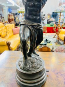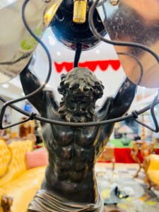 Tượng nam lực sĩ nâng đỡ đầu quạt – dáng đứng mạnh mẽ, cân xứng